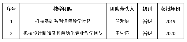 共有2个省级教学团队和2个省级优秀基层教学组织。