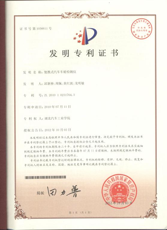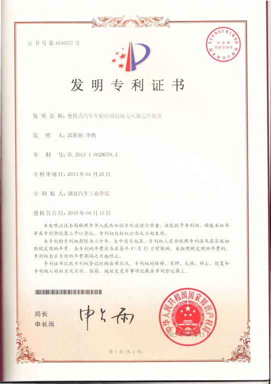 针对汽车维修现场车轮摆差不便于检测的问题,该项目研发了一种积木式拼装结构的便携式汽车车轮检测仪,能够实现多品种车轮摆差的在线/离线检测。该检测仪采用气体静压测头机构、利用磁力夹紧定位装置对被测车轮进行快速定位和夹紧,同时采用先进的ARM最小系统和PLC联动方式实现检测和控制功能,集存储、显示及统计等功能于一体,可生成、显示被测车轮各个跳动值的一次谐波图,具有体积小、稳定性好、便于携带的优点。该项成果获国家授权专利6项,其中发明专利2项,目前已在东风汽车车轮有限公司推广应用,取得了巨大的经济效益。
