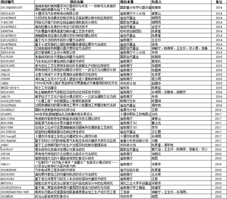 机械工程学院2014-2018年纵向科研项目一览表