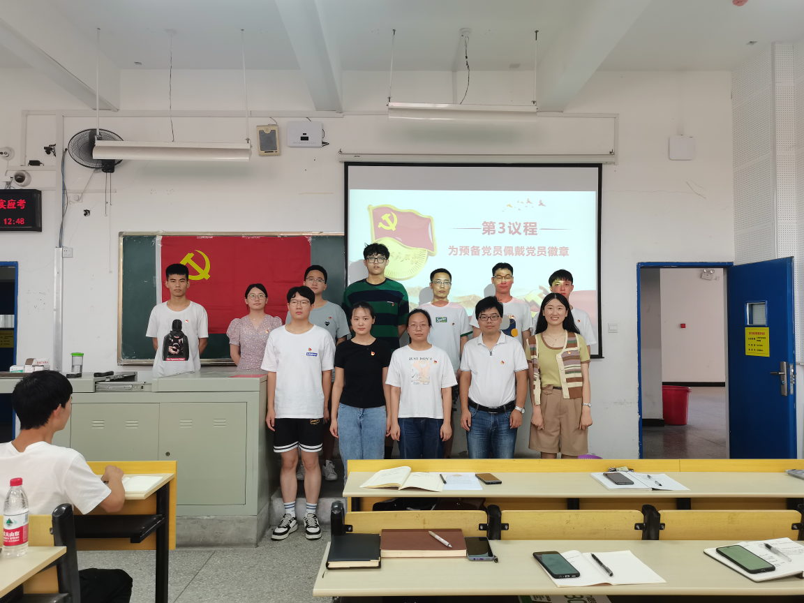 宣誓仪式在庄严的《国际歌》声中拉开帷幕。会上,支部书记、优秀学生党员为新党员佩戴党徽。“我志愿加入中国共产党,拥护党的纲领,遵守党的章程……”,在骄阳似火的六月,28名新发展的预备党员面对党旗庄严宣誓,发自内心用真诚坚决的声音表达对党忠诚的决心。