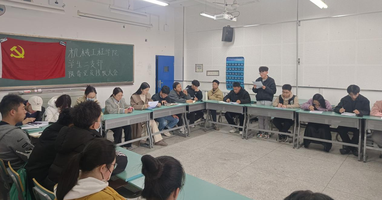 党员工作的实际安排,机械工程学院学生党支部于2023年11月28日中午在6201和6301教室召开2023年下半年预备党员接收大会,讨论苏炅等16名同志发展为中共预备党员的接收事宜。大会分别由学生党支部书记何理和张倩文主持,全体党员、预备党员参会。