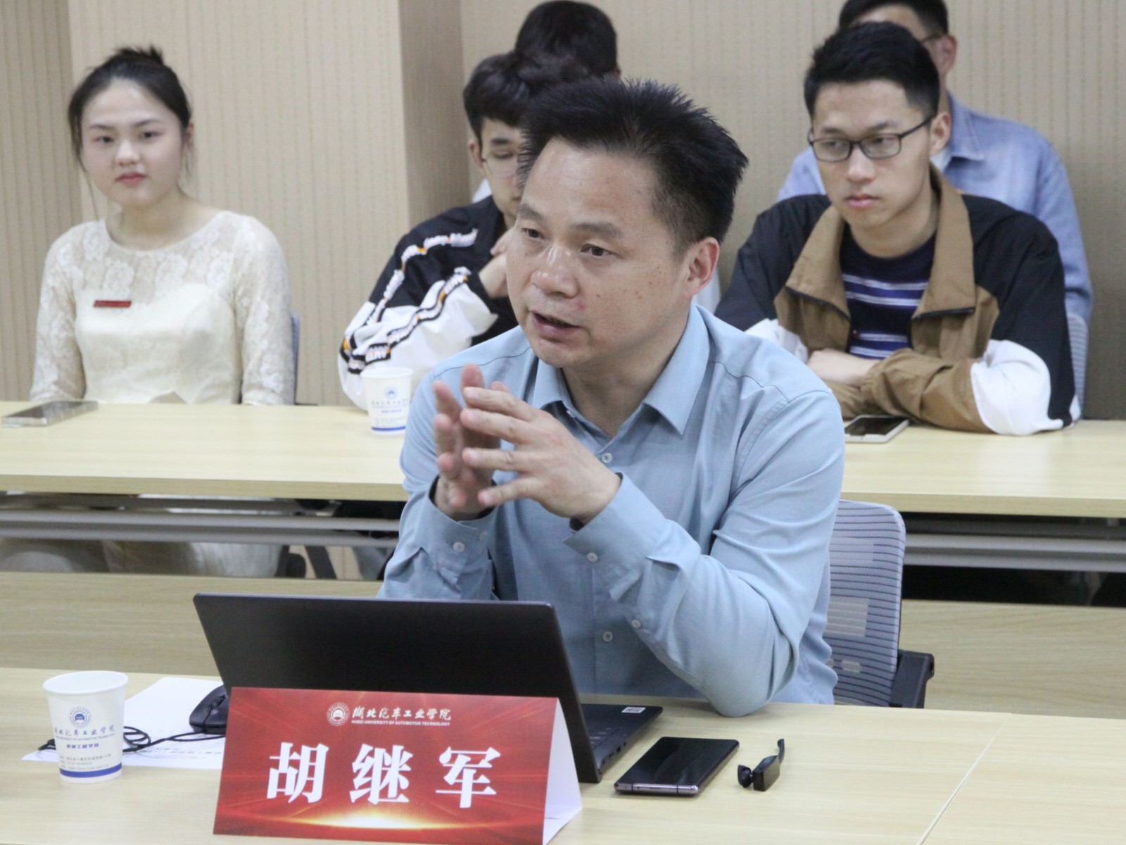 胡继军从汽车产业发展地位、千人汽车保有量现状、汽车产业发展近况、国内汽车进出口情况、自主品牌汽车发展历程、新能源汽车发展趋势等六个方面讲解了汽车产业发展情况,并从努力提高学历、关注自主品牌、发扬奋斗精神等方面给同学们进行职业生涯发展指导。