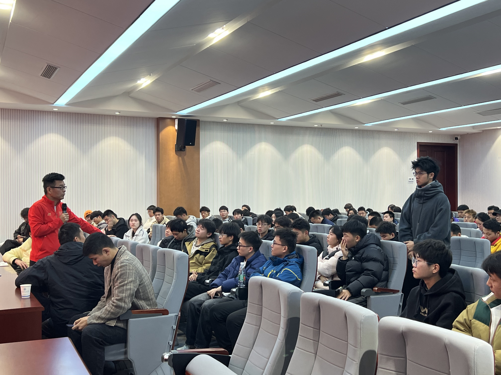 王羽白从自己代表中国加2023年在菲律宾举行的第22届亚洲大师田径冠军赛比赛经历引入,从体育会给职场生涯会带来什么,职场对人的评价体系与学校有什么不同,如何理解“客户永远是对的”,从业务员到管理者的路径这四个方面,结合自己的工作实践经历和大家分享了职场生涯发展的宝贵经验。他在分享中充分诠释了体育对于职场生涯的促进作用,鼓励学生要注重细节、树立大局意识和服务意识,在学习工作生活中发扬体育精神、奋斗精神,做好准备规划和设计好自己的职业生涯,以更好贡献国家!贡献社会!贡献母校!