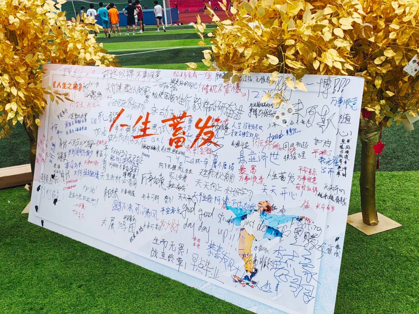 寄语未来,共绘人生旅途之“伟”。筑梦青春,对话未来。在第三板块“人生蓄发”的活动中,同学们将自己的人生规划、未来期望等书写在明信片上,并亲手挂于展望树,把憧憬留在笔尖,不给青春留下遗憾。心有所向,方能行远。同学们在通过书写下自己的心愿与期望寄语未来,共同绘出属于自己人生旅途之“伟”。