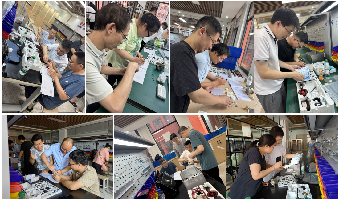开班仪式结束后,全体教师进行“开班第一课”,进行老爷车金属车模拆装及逆向设计。老师们3人一组进行实践操作,一场业务素养与综合技能的较量如火如荼地开展着。