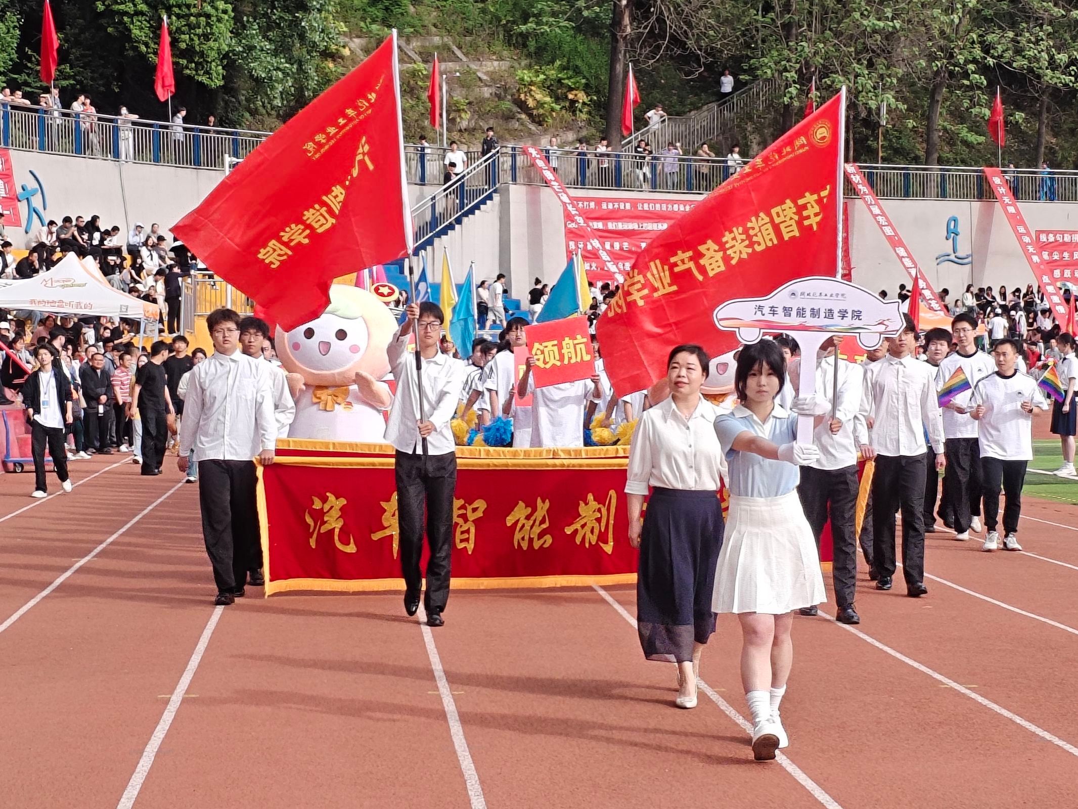 开幕式上,伴随《运动员进行曲》的激越旋律,学院党委书记崔海英率方阵迈着青春矫健的步伐走入主席台。“智能领航,制造未来,创新驱动,勇攀高峰!”的嘹亮誓言响遏行云,72人方阵有序列阵演绎智能制造图谱。在司机社