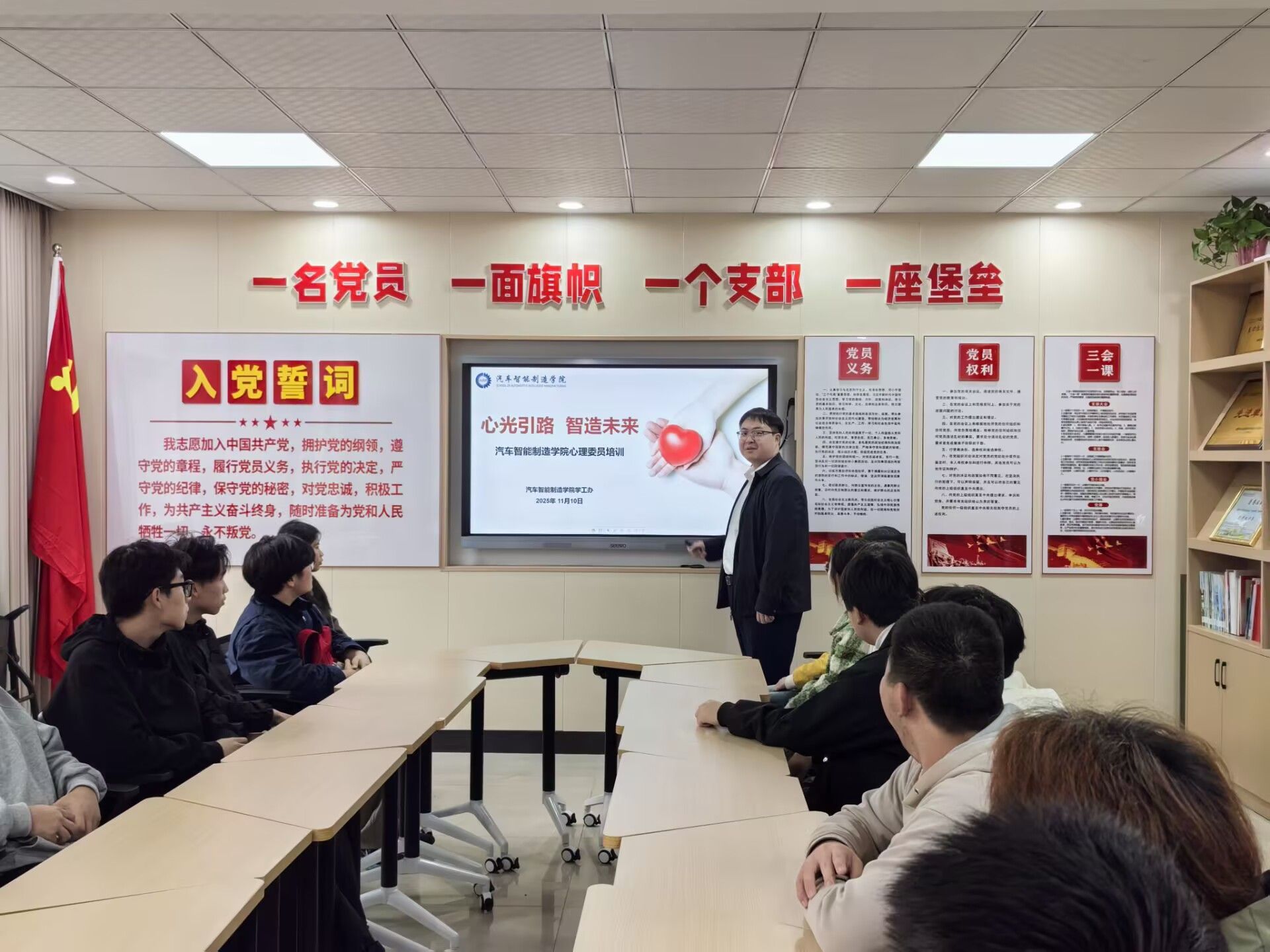 在机械楼J305和302会议室针对班主任和心理委员、寝室长分别开展“心光引路 智造未来”心理培训,培训会由学院党委书记崔海英和辅导员杜辰楠主讲。