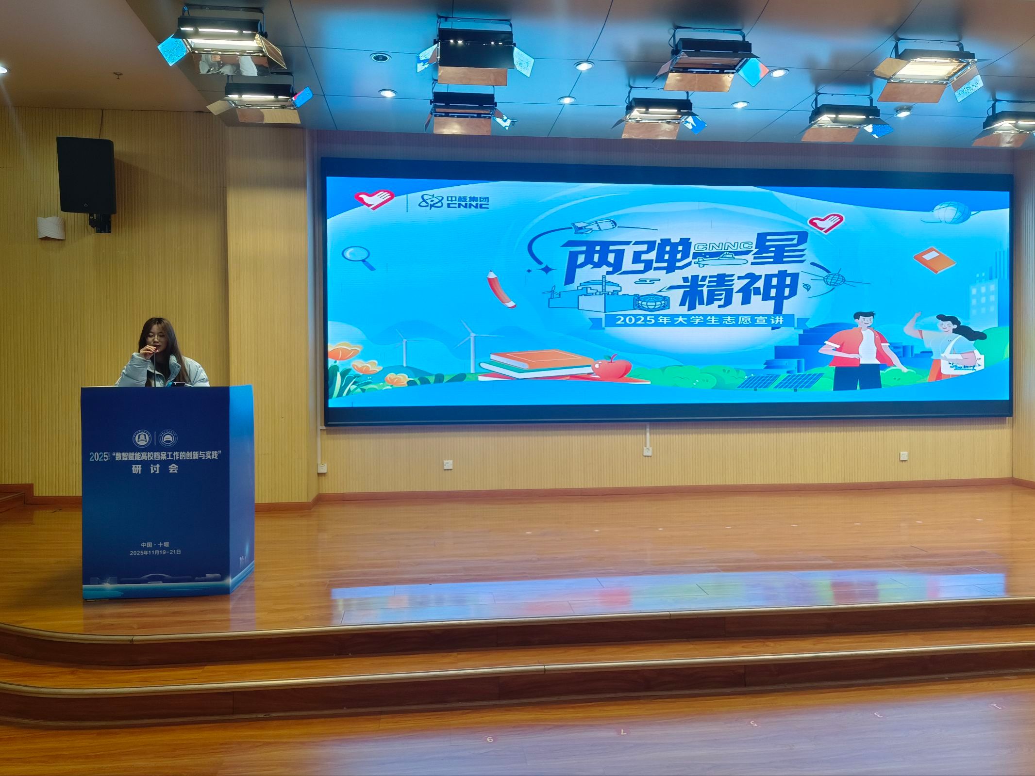 在图书馆报告厅举办“两弹一星”精神宣讲暨青年志愿者培训活动,吸引了120余名对核工业发展、志愿服务抱有热忱的同学到场参与,现场氛围热烈。