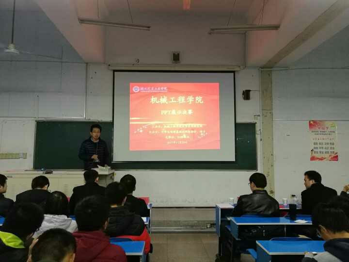 11月20日晚上21:00,由机械工程学院大学生创新基地举办的“规划大学生活,我用PPT代言——PPT展示大赛”决赛在2302教室举行。机械工程学院工业工程系副教授李峰、机械工程学院分团委书记陈建军、机械工程学院创新基地主任黄川、副主任李浩、副主任郭嘉磊、秘书长张楠、动力先锋社社长余恒顺、ID绘新社社长张珀参加本次活动并担任评委。