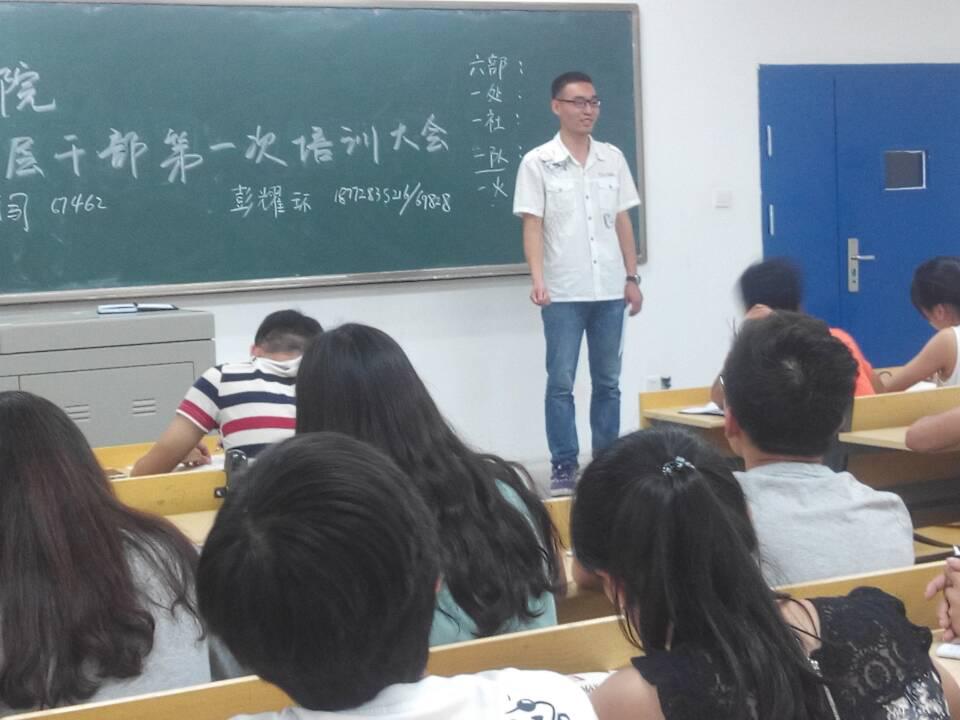 6月17晚上7时,“机械工程学院学生会中层干部第一次培训会”在6309教室举行,机械工程学院第32届学生会主席团和中层干部候选人参与了此次培训会。