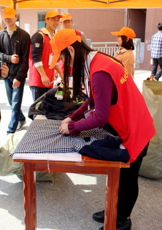 大约上10时,设立在桃园广场、李园宿舍、西区宿舍、二食堂门前的帐篷前人来人往,咨询的同学不计其数,还不时有同学提着大包小包走过来捐赠。“你们这衣服是捐到哪儿去啊?”这个问题是志愿者们听得最多的,“这些衣服先由我们募捐,然后先分类整理后交给“小草义工”和“爱十堰社区”,由他们分发给有不同地区需要帮助的贫困人群。”听到这样的回答后,很多同学表示有衣物要捐赠。“我们宿舍有很多旧衣物,但是我们力气太小搬不动。”话音刚落,就有志愿者站出来说到:“你们住哪儿宿舍,我们去帮你拿。”