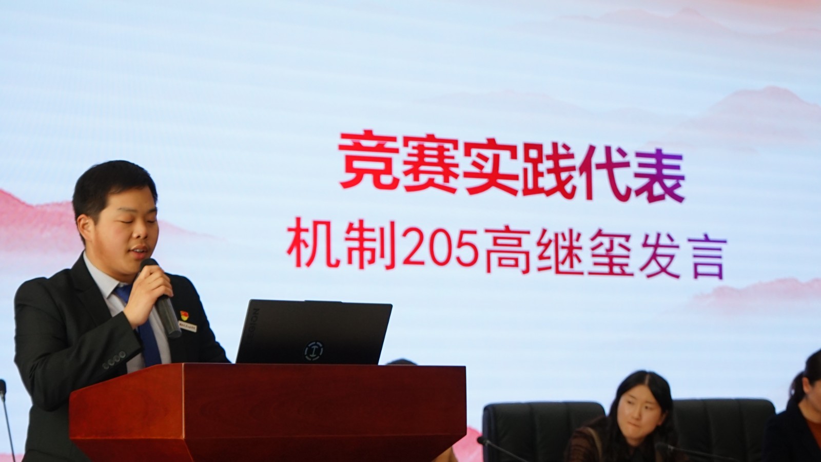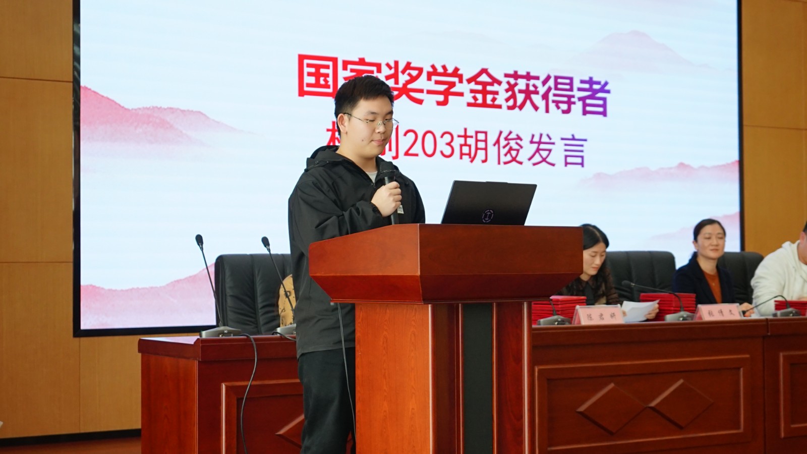 2022年国家奖学金获得者机制203班胡俊同学做获奖发言,表示大学生应始终端正态度、明确学习目标、掌握方法坚持好的学习习惯、勤奋学习、积极实践,在困难和挑战的磨练中广才成学,才能“直挂云帆济沧海”!创新基地代表机制205班高继玺同学分享经验,表示“参加了、准备了”才会有收获,“多学了、多问了”才会获好奖,“目标高了,创新了”才会获大,并呼吁同学们把握当下,砥砺奋进,同赴未来!