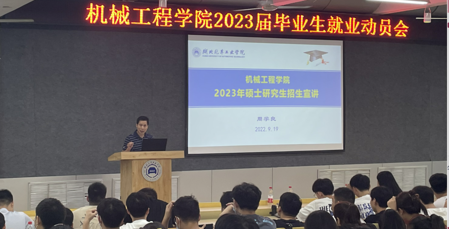 为增强2023届毕业生就业的主动性和积极性,9月19日下午15:00,机械工程学院在6113教室组织开展2023届毕业生就业动员会。机械工程学院副院长周学良,辅导员张倩文、隋建军,2019级全体学生参加会议。会议由辅导员张倩文主持。