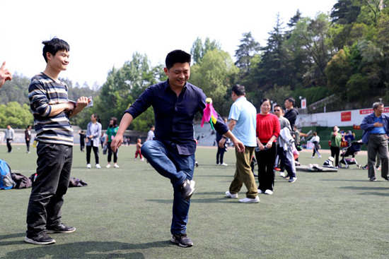 教工运动项目以趣味运动项目为主,既有吊瓶跑、足球射门、立定跳远、俯卧撑等个人项目,也有踢毽球迎面接力、夹乒乓球迎面接力、二人三足等团体项目。运动场上,老师们赛前认真热身准备,赛场上争分夺秒、英姿飒爽。吊瓶跑、足球小将、踢毽球迎面接力项目的比赛异常激烈,参赛老师一个个精神抖擞,队员们都在一旁加油鼓劲,场面十分热闹。