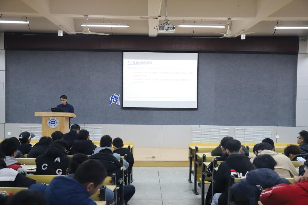会上,宫爱红从机械大类专业分流的原则、依据、程序、时间安排四个方面向同学们详细介绍专业分流的具体事宜,建议19级新生在选择专业时不仅要结合自身兴趣,明确未来定位,还要仔细研读分流依据,按照学校规定认真对待。