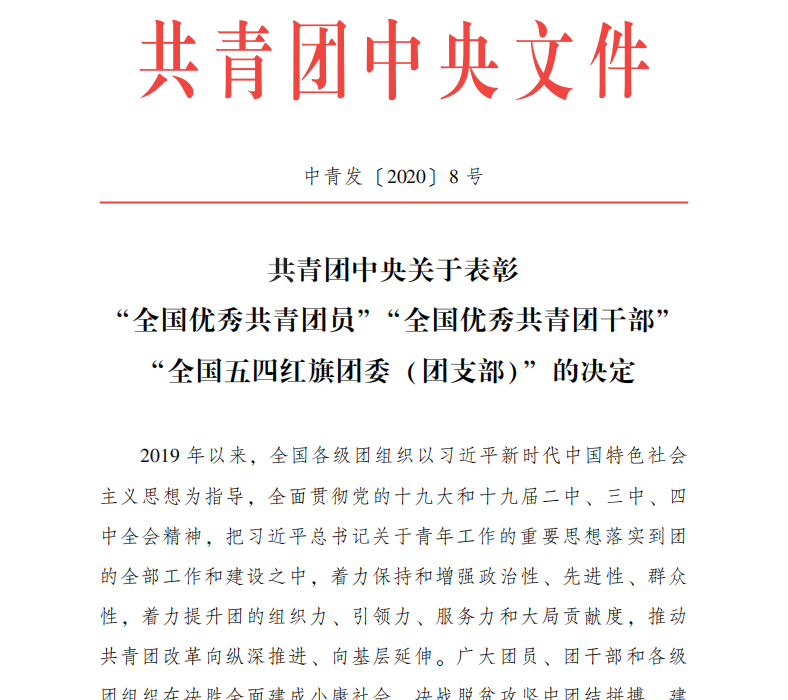 在“五四”青年节来临之际,共青团中央发布了《关于表彰“全国优秀共青团员”“全国优秀共青团干部”“全国五四红旗团委(团支部)”的决定》,对过去一年全团在各方面表现突出的先进集体和个人进行表彰,我校机械工程学院团总支荣获“全国五四红旗团总支”荣誉称号。“全国五四红旗团总支”,是共青团中央授予全国基层团组织的最高荣誉,这是我校历史上首次荣获国家级“两红两优”荣誉称号。