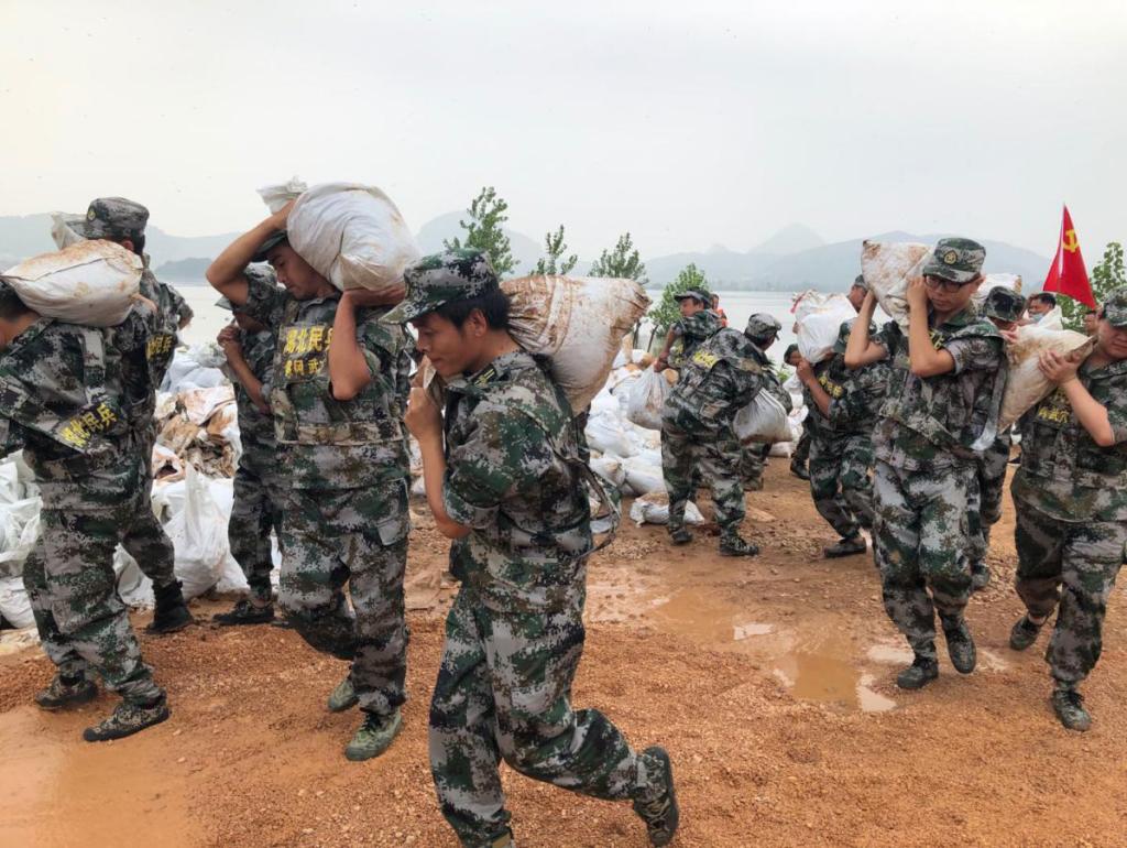 自7月11日接到命令以来,龚文杰所在的由退役军人组成的民兵应急排已经连续奋战在抗洪抢险一线将近10天时间。不论是大雨滂沱的白昼,还是蚊虫肆虐的黑夜,龚文杰都坚守岗位。从武穴城区滨江公园堤坝到兰州社区金牛湖堤,哪里有险情他就第一时间去哪里。从7月12日到7月14日,在抢险最关键时候,龚文杰与民兵排30名民兵一起二十四小时集体待命,吃住都在坝上。饿了,就泡碗方便面;累了,就地在圩埂上打个盹儿,到了晚上就在地上垫块塑料和衣而睡或者就地而坐。龚文杰介绍,灌沙袋、扛沙袋、堵缺口是他们每天最主要的工作内容。当时的圩堤上有多处渗水点,部分圩堤已发生塌陷,民兵排到达后迅速投入抢险,用碎石、土袋在危堤周围垒筑加固,阻止坝基流失。他们的身上满是泥土,鞋子基本没有全干过,经常要奋战到凌晨,有时候实在坚持不住了就在沙