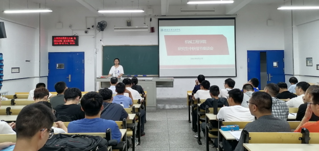 9月17日,时至中秋佳节之际,机械工程学院于6206教室召开全体研究生中秋佳节座谈会,机械工程学院分党委书记宫爱红,副院长周学良,副院长王红霞,教学科研办公室主任冯霞,班主任龚青山副教授,研究生处何君老师及机械工程学院全体研究生出席会议。