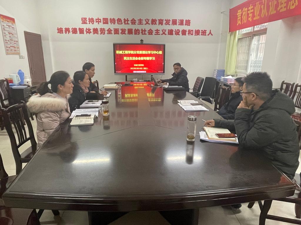 2021年校院两级领导班子党史学习教育专题民主生活会实施方案》的通知(汽院党发〔2022〕2号)要求,机械工程学院分党委先后召开了民主生活会意见征求座谈会及民主生活会会前专题学习会议。