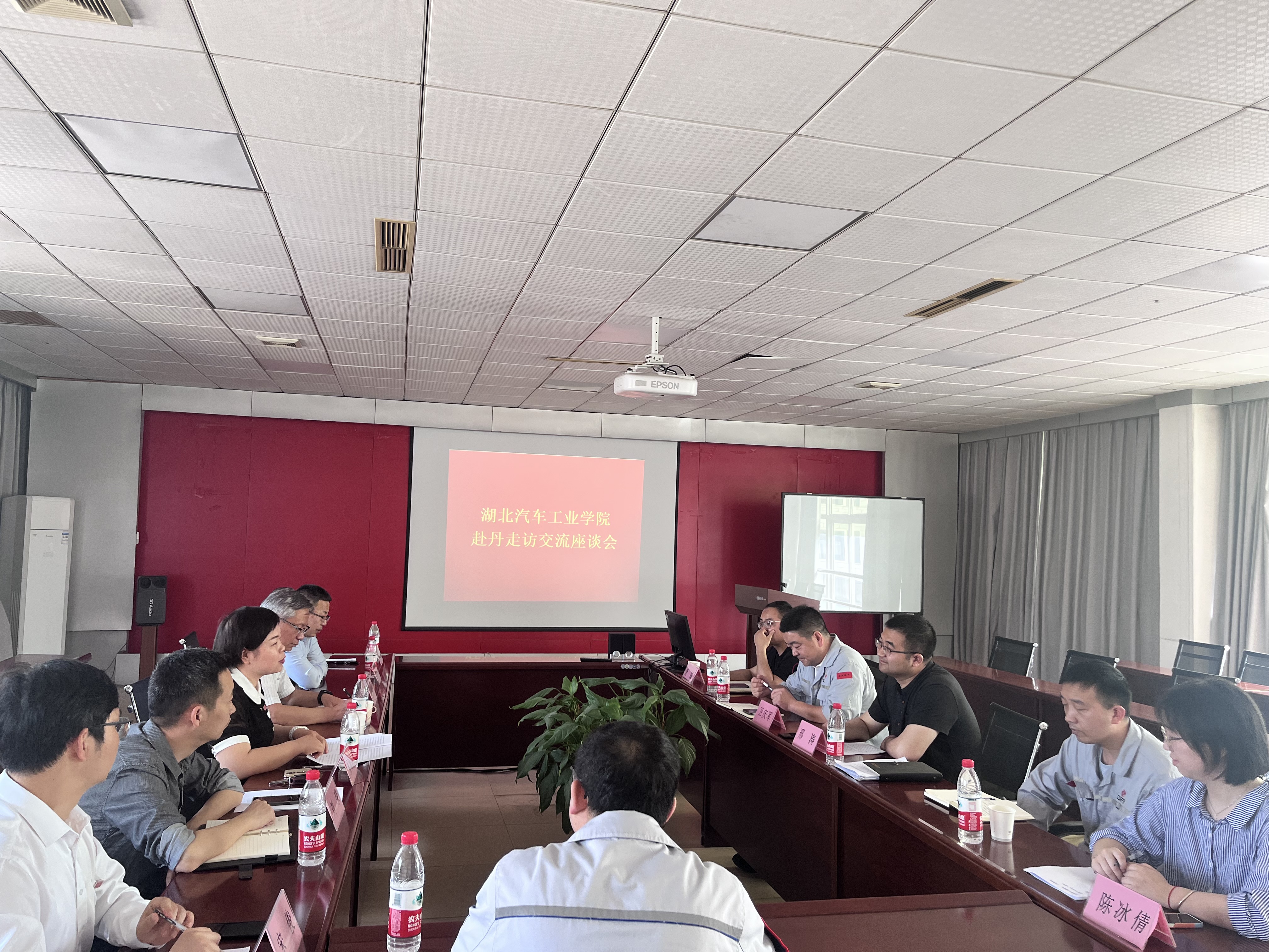 50周年校庆宣传片《点亮》,感受学校发展历史和成果,接着王保华就学校的学科与专业建设、人才培养及近年毕业生就业状况等内容作了详细介绍。他指出,学院一直以来高度重视学生综合素质的培养和留堰就业创业思想观念的宣传引导,希望通过本次走访在实习实训、人才培养等方面建立校企合作交流机制,发挥各自优势,共同为本土人才培养和经济发展助力。丹江口市六里坪镇副镇长邢涛作为汽院校友对母校的培养表示感谢,对学院的走访交流表示欢迎,并介绍了六里坪镇的产业布局、发展规划和用人需求,各企业负责人介绍了企业发展历程、经营状况、岗位需求和实习就业情况。