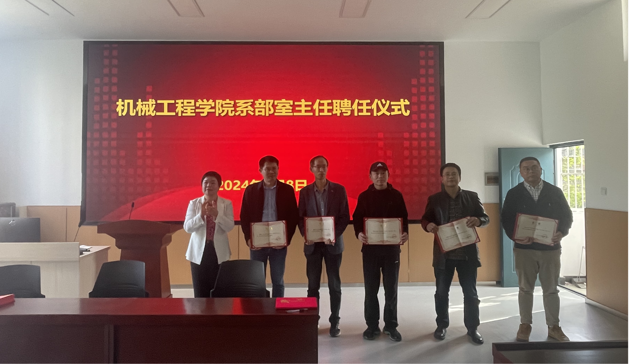 4月8日下午,机械工程学院在学院J305会议室举行系部室主任聘任暨目标任务书签订仪式。学院全体教职工参与会议,会议由分党委书记崔海英主持。