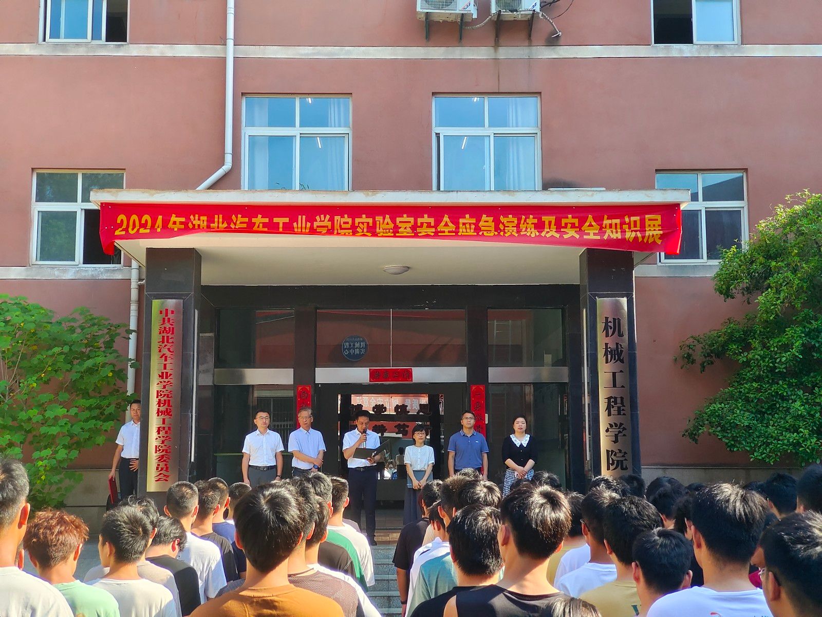 6月初夏,荷风送香,今年6月是全国第23个“安全生产月”,6月12日上午,国资处、保卫处、建管处、机械学院、东岳消防大队红卫救援站在机械大院联合举办了“人人讲安全,个个会应急——畅通生命通道”为主题的实验室安全应急演练及安全知识展系列活动,校党委常委、党政办主任王文山出席演练活动并讲话,国资处、保卫处、建管处、机械学院、双创学院、东岳大队红卫消防救援站消防队员,相关职能部门及各学院分管负责人、实验室主任、实验教师、学生代表等共220余人参与了活动。活动由保卫处副处长张华主持。