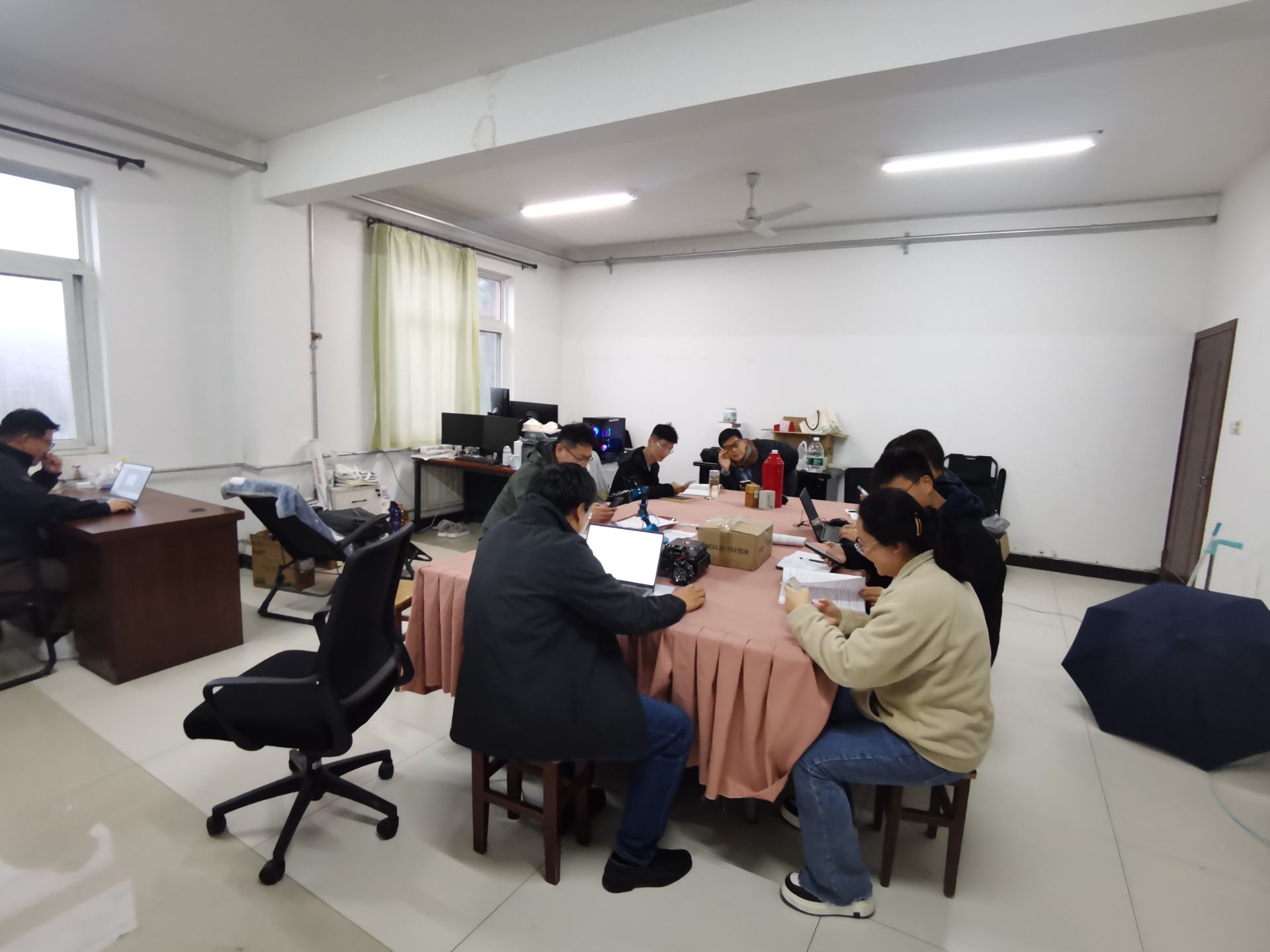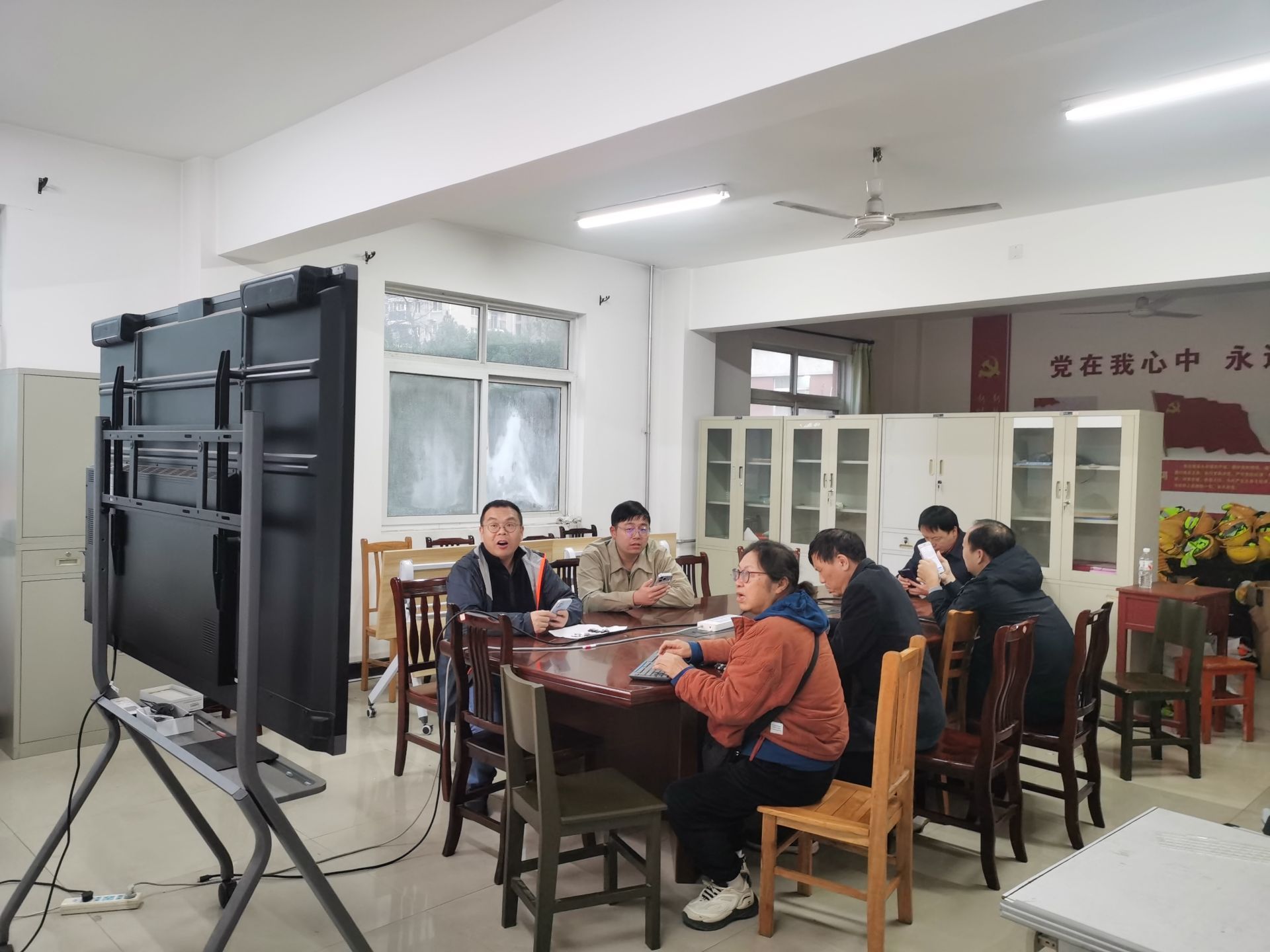考试过程中,各考场秩序井然。从集中研讨室到办公区域,师生们或围坐于会议桌前、或在工位上专注答题,以严谨的态度对待每一道题目;在专用考室,师生们面对大屏幕认真审题、仔细作答将对校院情的了解与评估知识的学习融入笔尖,切实做到以考促学、以学促用。