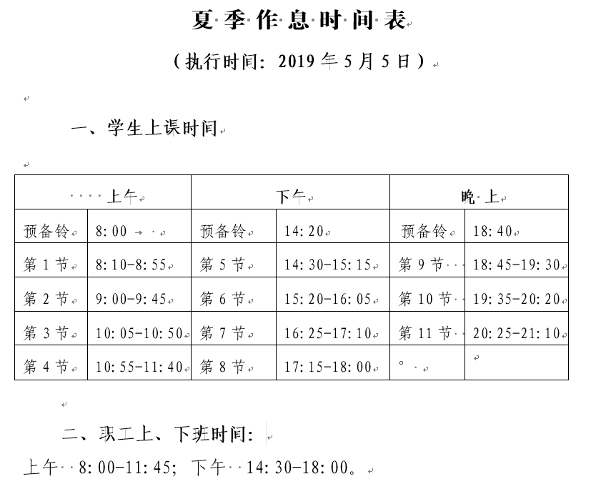 从5月5日起,执行夏季作息时间。