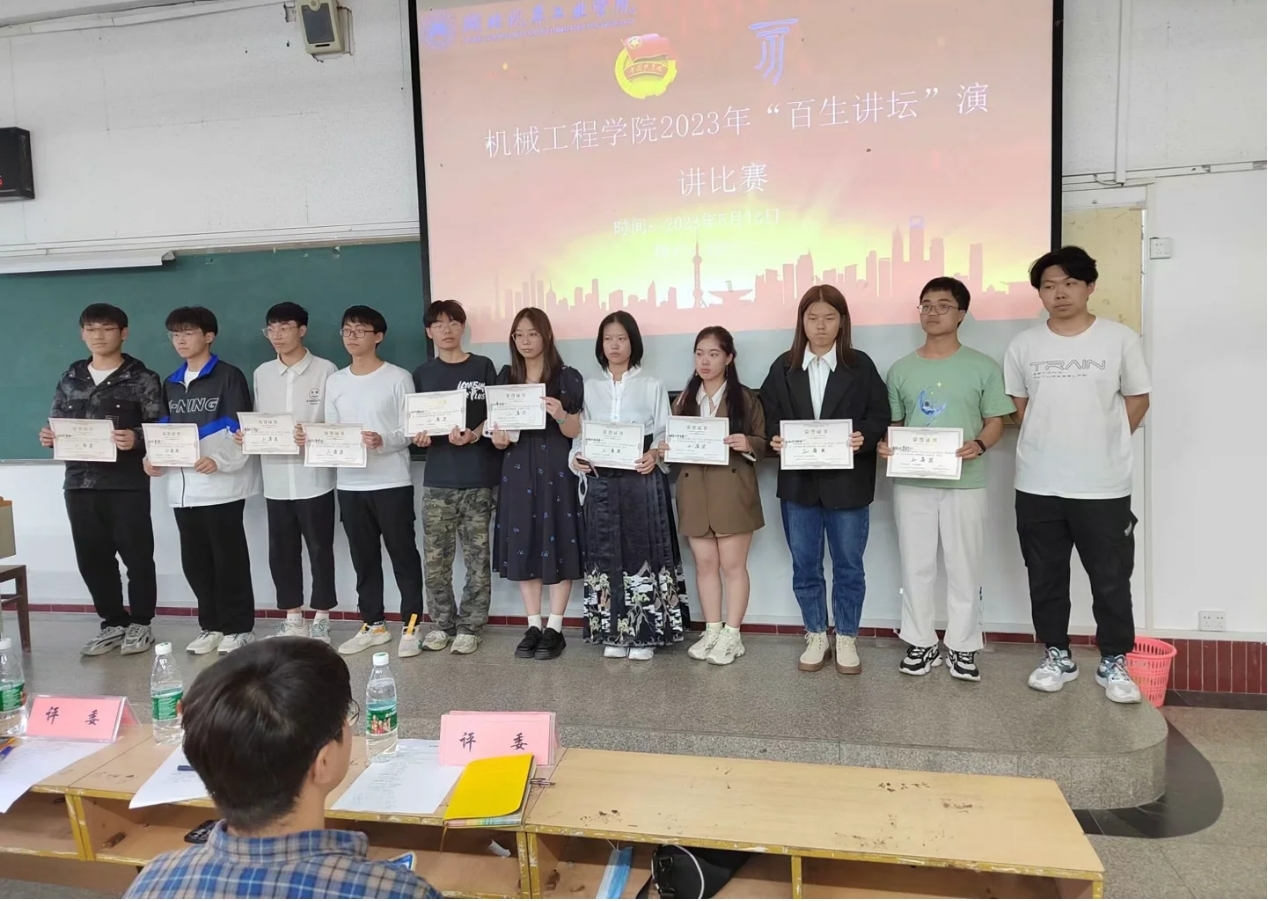 为了深入学习贯彻二十大精神,丰富本院学子课外课余活动,让学生把思想和行动统一到党的二十大精神上。机械工程学院于2023年5月13日下午3点,在二教2201开展“学习二十大、永远跟党走、奋进新征程”百生讲坛演讲比赛决赛。机械工程学院学工办辅导员钱坤老师,学生代表蔚茂鑫、陈策全、寇明涛出席担任评委,2022级学生参加。