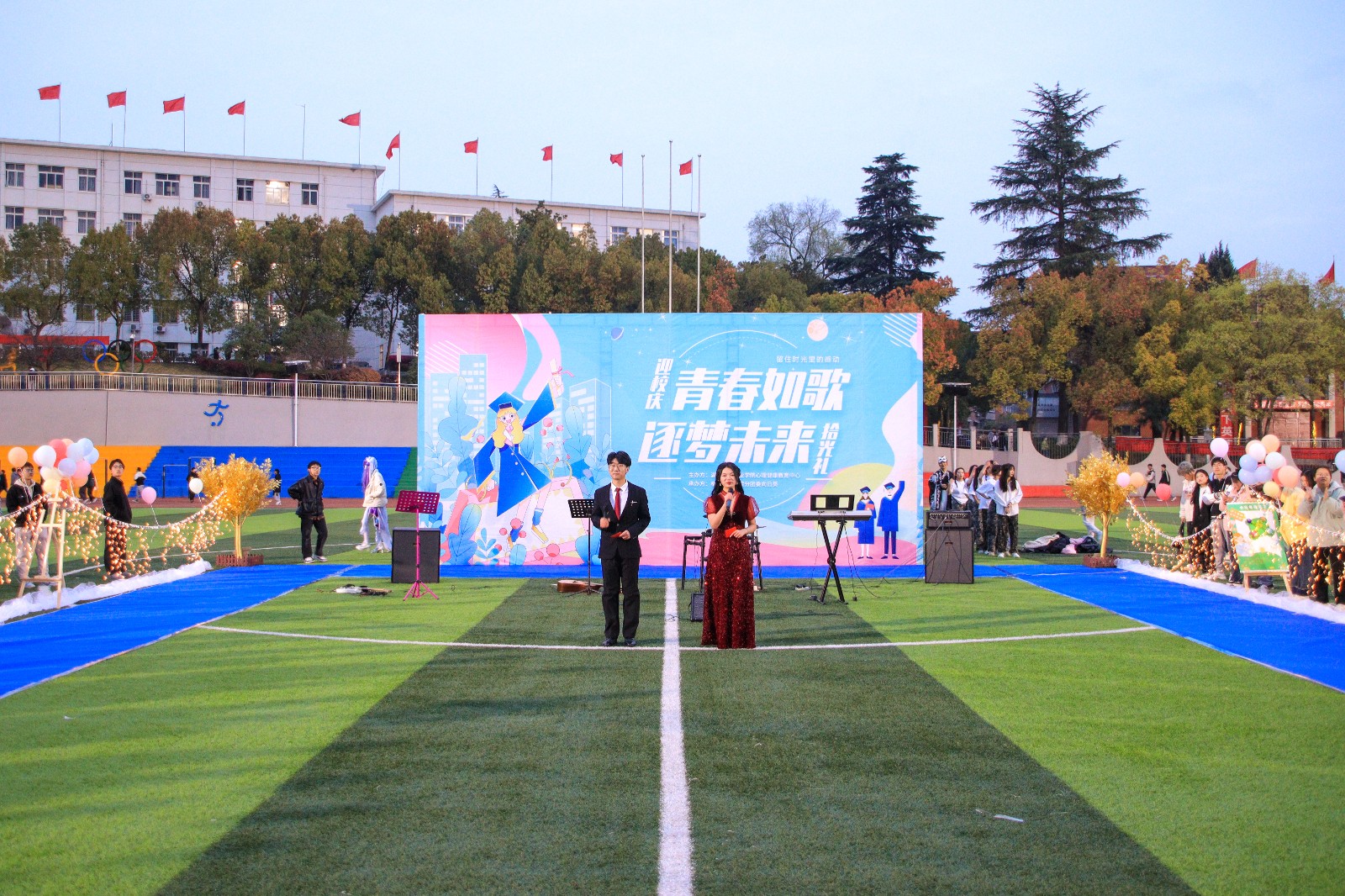 心理健康中心主办,机械工程学院分团委向日葵承办的“青春如歌,逐梦未来”拾光礼大型校级活动于3月18日晚6:30在田径场顺利举行。