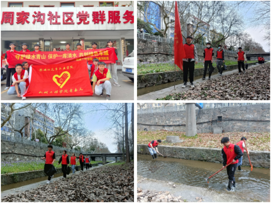 3月11日下午,机械工程学院青春火志愿者与周家沟社区联合开展“守护绿水青山保护一库清水共创绿色车城”志愿巡河护河活动,在学校门前的河道巡查,清理河道周围和水体中的垃圾杂物,志愿者们认真地将河道垃圾清理得干干净净,以不怕脏、不怕累的干劲,积极认真投入到清理行动中,让河道变得更加干净美丽。志愿者们行走在河边巡视,宛如“一团火”照亮河道,成为河道一条靓丽的风景线。