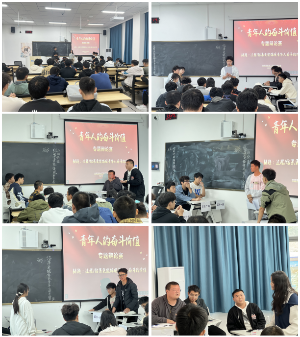 此次专题辩论赛以“过程/结果更能体现青年人奋斗的价值”为辩题,16个班分为8组同时进行。辩论赛分为立论质询、攻辩、自由辩论、总结陈词和评委提问点评等环节。多支队伍在辩论期间旁征博引,充分阐述自己观点,激烈交锋。