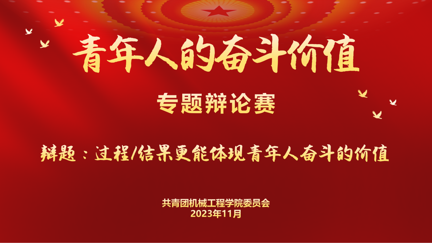 为引导青年学生自觉学习践行新思想,在理性思考和深入思辨中厘清关于奋斗精神的思想困惑,树立正确坚实的奋斗观。11月4日,共青团机械工程学院委员会在学校北区综合教学楼组织开展“青年人的奋斗价值”专题辩论赛。学院分团委副书记钱坤、学生会干部、学校辩协相关成员和2023级各班新生参加。