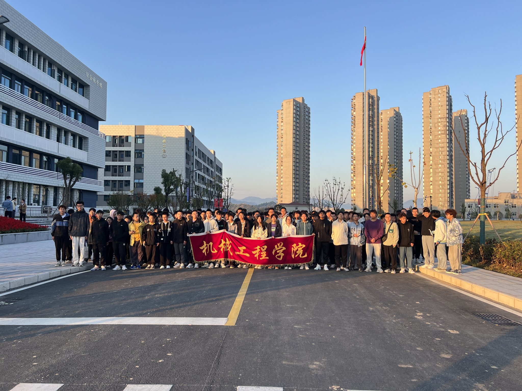 10月16日扩建校区综合楼前举行了“铸牢中华民族共同体意识,争做团结担当有为新青年”主题团日暨第七周升旗仪式。校团委老师杜伦、机械工程学院分党委副书记马晓涛、外国语学院分党委副书记魏伟等老师和2023级同学参加。