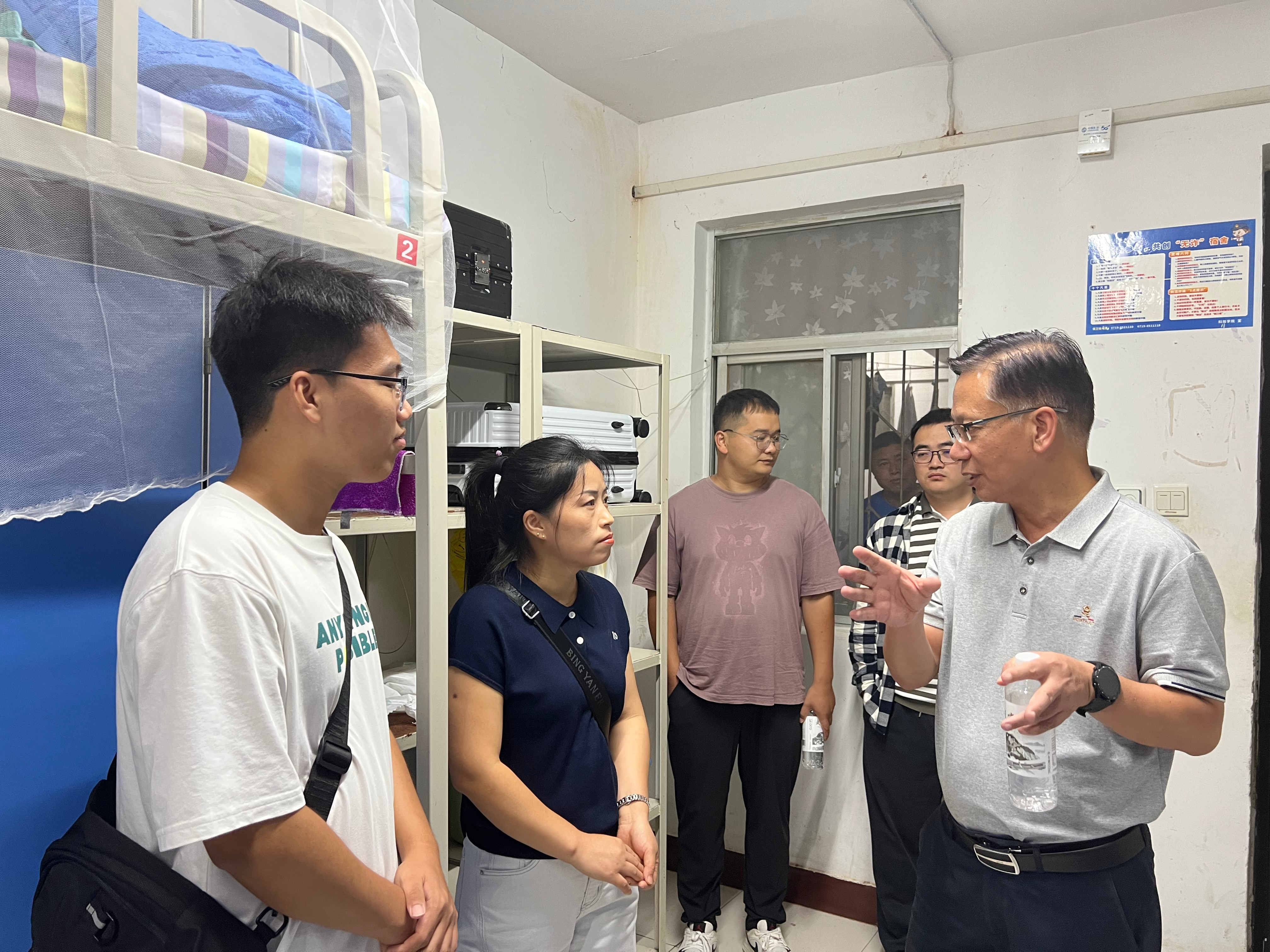 党委书记崔海英、院长王保华,党委副书记马晓涛,副院长陈君宝、王宸、王红霞,带领全体辅导员和班主任走访2025级新生宿舍。