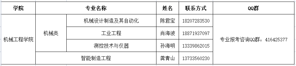 机械工程学院2021年各招生专业专家咨询电话及QQ群