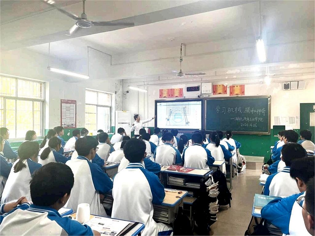 2024年本科招生政策、新增专业等情况。机械工程学院优秀青年教师宋俊就“奇妙的机械”这一话题开展科普讲座,并现场展示3D打印作品,播放学院学生在2024年湖北省大学生机械创新设计大赛入围国赛的作品答辩视频,引得同学们阵阵掌声。