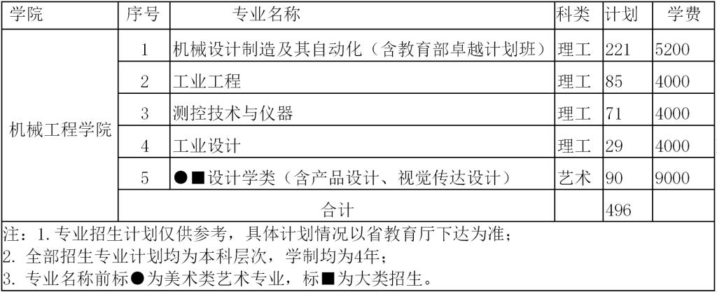 2018年机械工程学院招生专业计划一览表