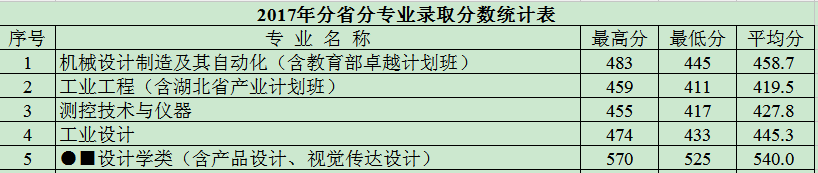 2017年湖北省分专业录取分数统计表