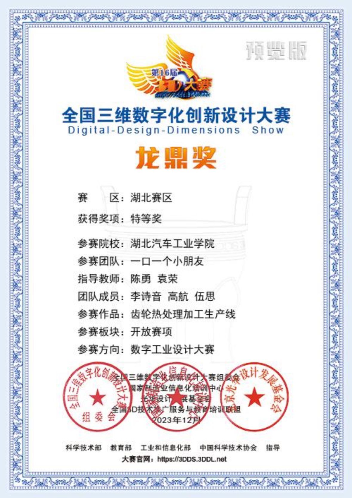 十六届全国三维数字化创新设计大赛龙鼎奖 |