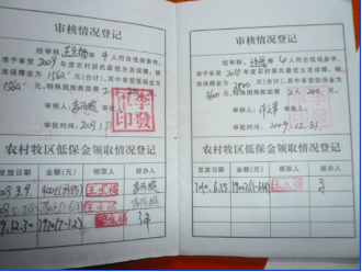 2、低保证年审记录或领取低保金记录,如下图(复印年审记录或领取低保金记录,是为证明学生的家庭正在享受低保待遇)