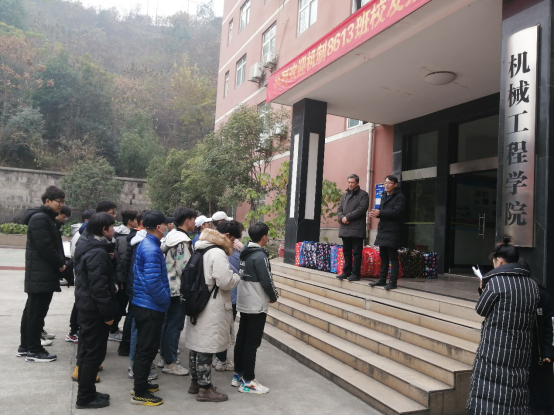 近日寒潮来袭,为了帮助同学们过上一个暖冬,学校采购了一批棉被给有需要的学生。2020年12月9日下午,校党委副书记杨立志,机械工程学院分党委书记宫爱红、副院长周学良,机械工程学院全体辅导员在机械大院为学生发放棉被。