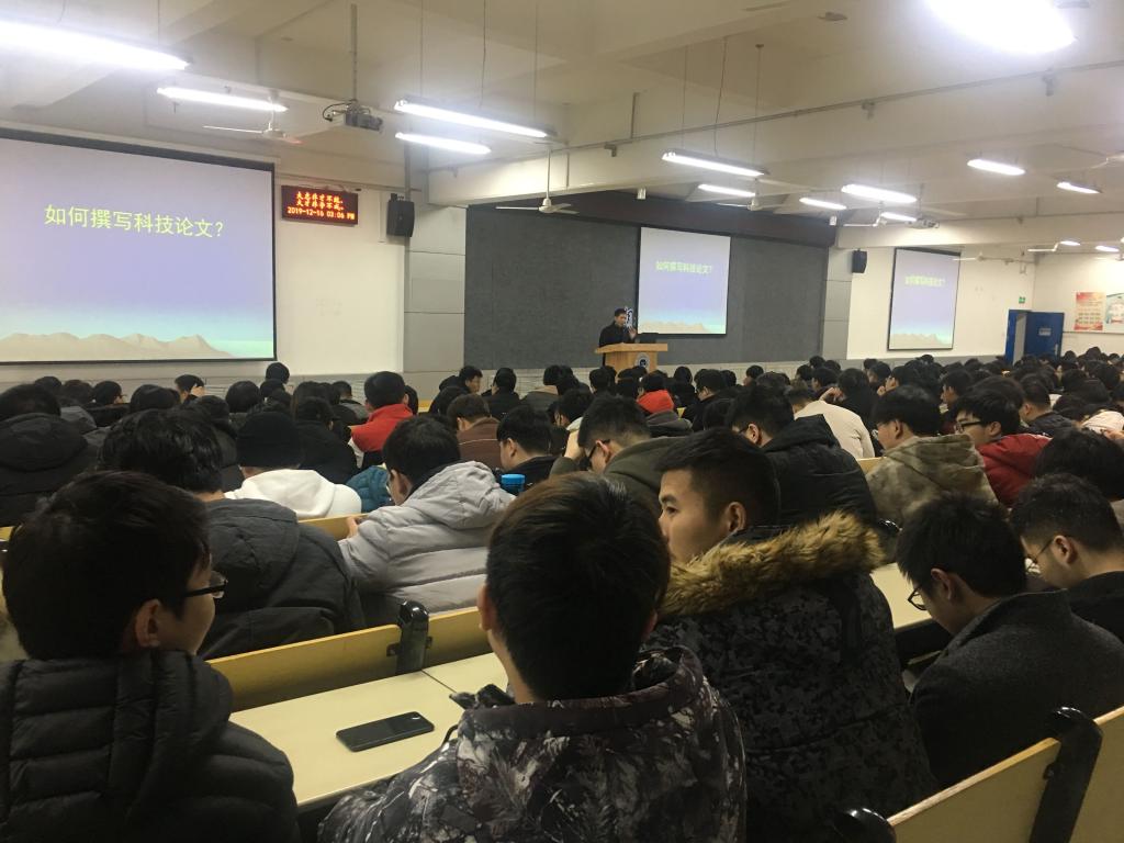 动员会第二阶段,周学良院长为在座的毕业生讲授科技论文写作技巧与规范。周院长从标题拟定、摘要写作、关键词选取等细节入手,结合案例,给毕业生们刻画了论文写作的全过程。周院长在讲授过程中,还给毕业生们强调了学术不端问题,要求毕业生要遵守学术道德规范,严禁论文抄袭作弊,用自己大学所学顺利完成毕业设计。