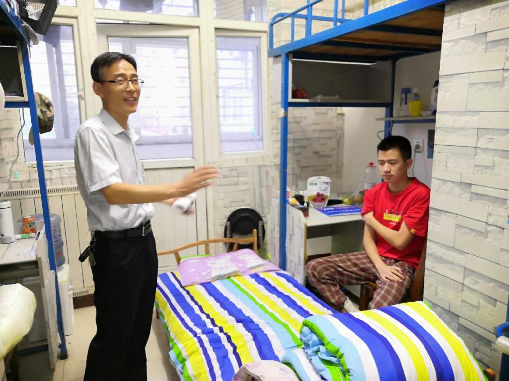 走进结对宿舍,宫书记首先询问了同学们的学习成绩,了解到有同学期初补考未过,便教育同学们要养成良好的学习习惯,并结合自身求学经历鼓励同学们树立人生目标,找准人生方向。“允许你不及格,允许你失败,但不允许你放弃。同学们要有持之以恒和艰苦奋斗的精神,为自己的人生而努力!”宫书记语重心长的对同学们说道。