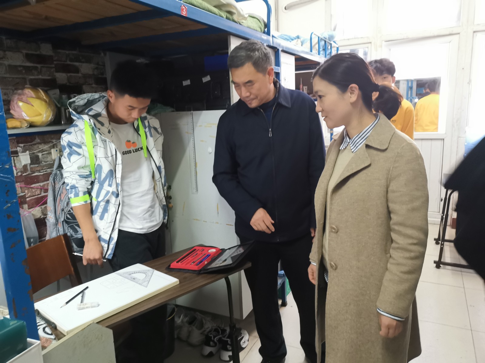 杨立志重点走访了大一学生宿舍,与同学们进行了亲切的交流,详细询问同学们的入住情况和到校感受,并为同学们介绍学校发展、学科建设等有关情况,嘱咐同学们加强自我管理,做好人生规划,快速融入集体,以“三更灯火五更鸡,正是男儿读书时”的态度砥砺奋进,切实提升专业水平和学术素养,建立和谐融洽的人际关系,抓住发展际遇,提升自身价值。在当前疫情严峻形势下,杨立志还深切叮嘱同学们树立家国情怀意识,积极配合疫情防控工作,做好个人防护,保持良好卫生习惯,展现青年学子的担当作为。