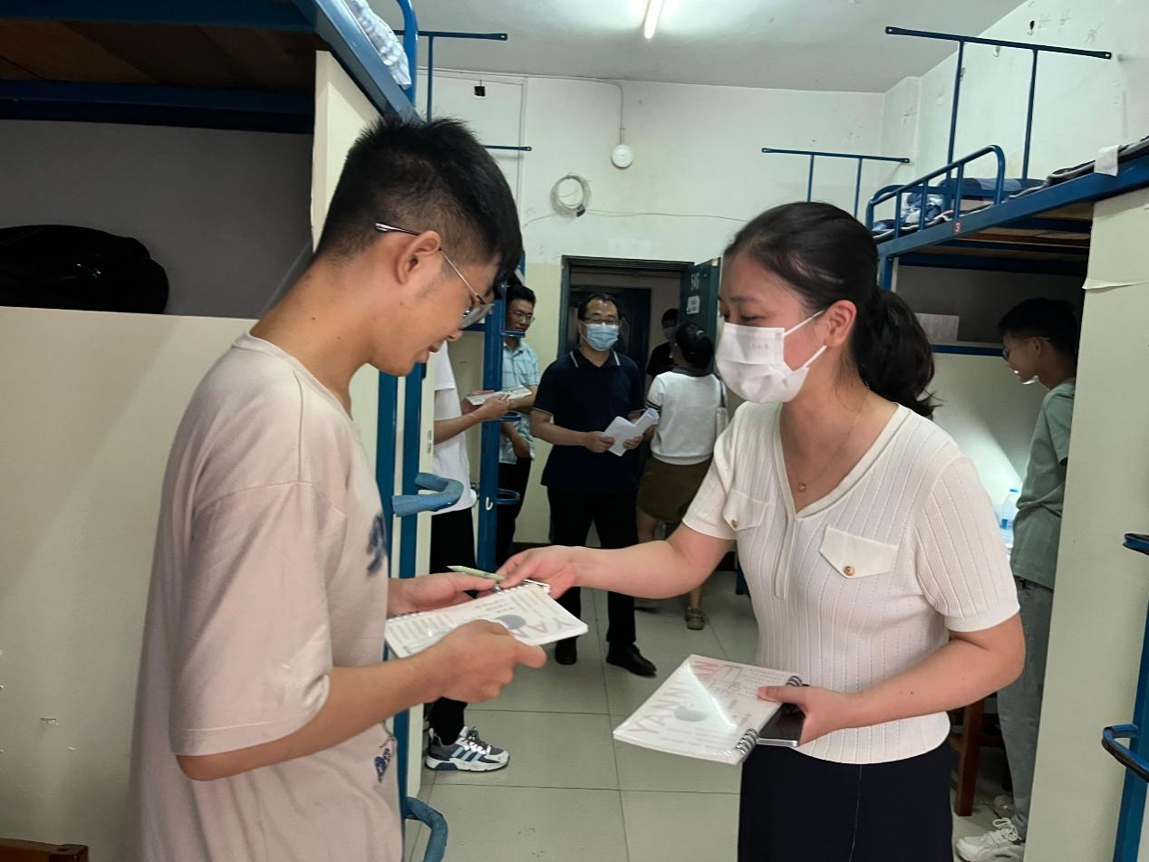 9月14号下午16时,学校领导、学院领导以及新生班主任走访新生宿舍,发放慰问礼品,并且亲切关心同学们到校适应情况。