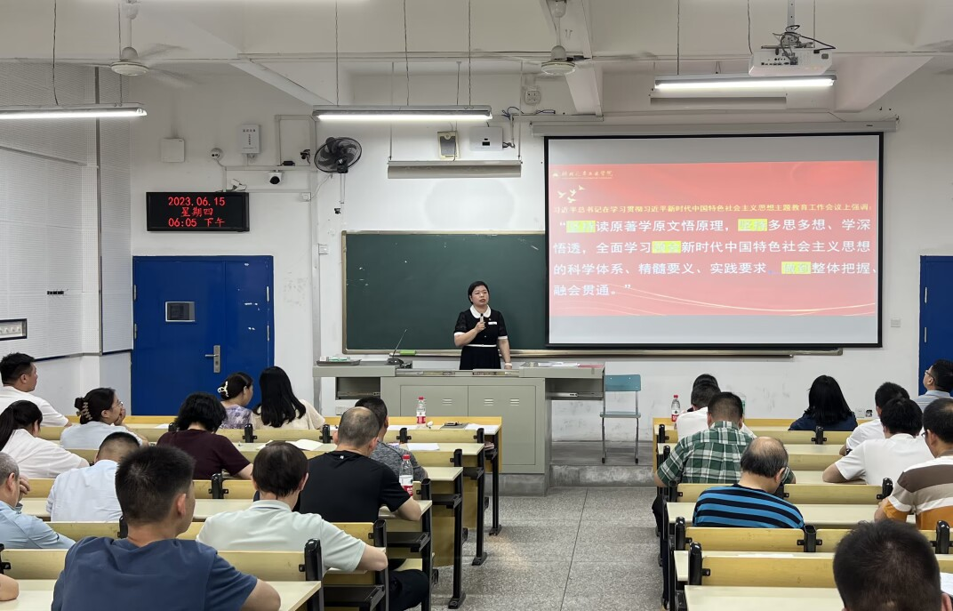 6月15日下午,机械工程学院分党委书记崔海英,在第六教学楼6206教室,讲授了题为《我们应该怎样读原著学原文悟原理?》的专题党课。机械工程学院全体教工、学生党员参加了学习。