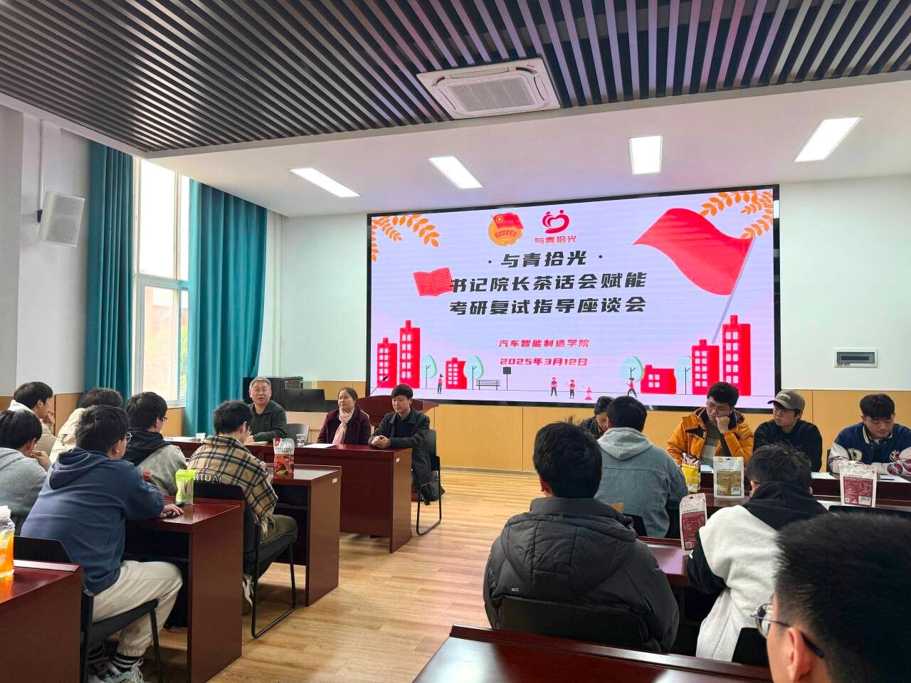 在机械大院实验楼J305举办“与青拾光”书记院长茶话会,学院副院长王红霞、副书记马晓涛携海文考研资深讲师周家成、学工办全体老师、2024届研究生“上岸”学长团组成“复试智囊天团”,通过“模拟实战+名师指导+朋辈引领”的创新形式为备战复试的学子注入强心剂。